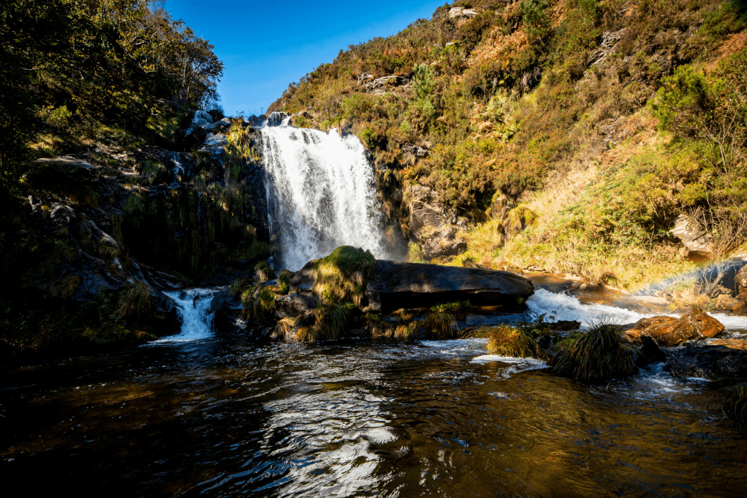 Un espacio natural de gran belleza donde una cascada de unos 30 metros cae con fuerza sobre una espectacular poza.